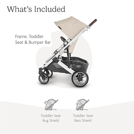 UPPAbaby Cruz V2 Stroller/Full-Featured Stroller with Travel System Capabilities/Toddler Seat, Bumper Bar, Bug Shield, Rain Shield Included/Declan (Oat Mélange/Silver Frame/Chestnut Leather)