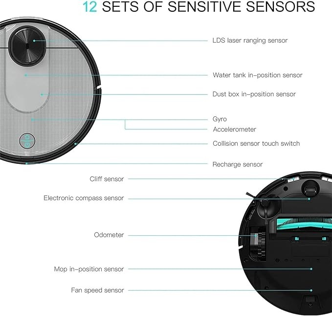 Vacuum Cleaner Robot Vacuum Cleaner Sweeping Mopping Robotic Cleaner 2100Pa Strong Suction Smart Navigating App Control Robot Vacuum Cleaner (Color : Black, Size : One Size) (One Size Black)