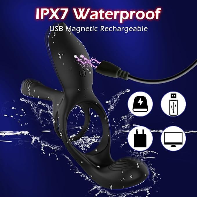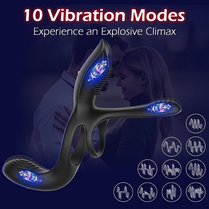 Vibrator for Couple, 3 in 1 Vibrating Cock Ring with 10 Modes, Men's Penis Vibrators, Perineum , G spot, Clitorals Stimulator for Women, Sex Novelties, Adult Sex Toys & Games Black