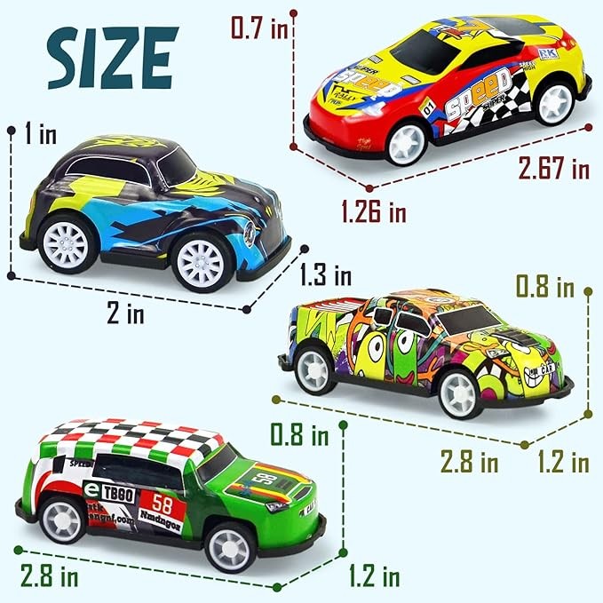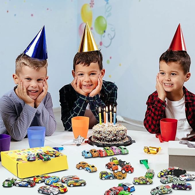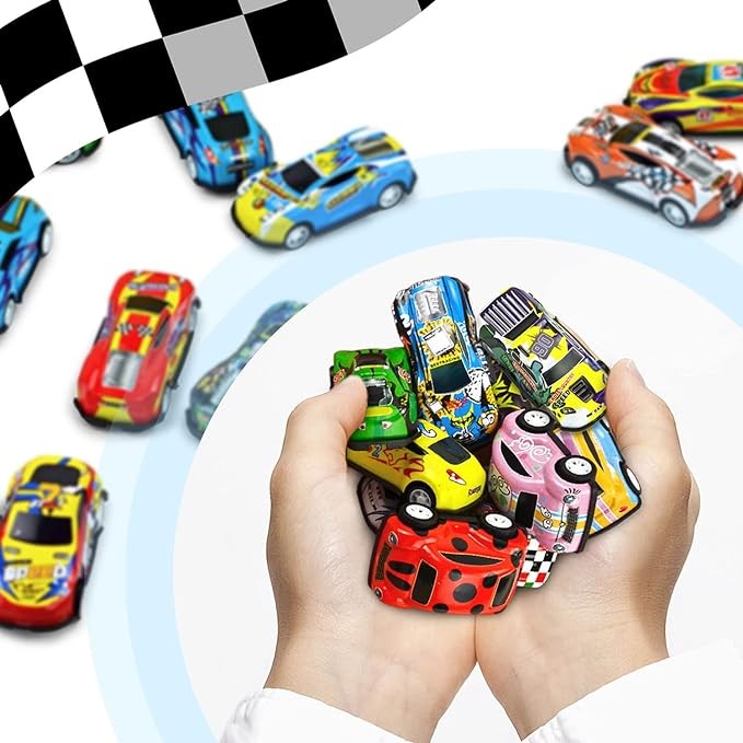 90 Mini Metal Pull Back Cars are designed to be durable and long-lasting, perfect for toddlers, party favors, classroom treasure boxes, kids prizes, and gifts. With lots of different metal cars to choose from, your kids will have a blast racing and collecting these tiny vehicles. Simply pull back on the car, let go, and watch it zoom across any smooth surface. The pull-back feature makes them easy for small hands to operate, and the compact size makes them perfect for on-the-go play. These mini metal pull back cars are also great for party favors, gift bags, and stocking stuffers. They're also a fun and affordable way to add a little excitement to any event. Whether you're looking for a fun toy to keep your kids entertained or a unique gift for a car enthusiast, our set of 90 Mini Metal Pull Back Cars is sure to delight you. Let’s start racing!