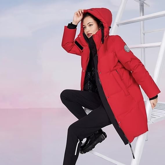 Winter Women's Mid-Long Down Jacket, Removable Hood Down Jacket, Outdoor Down Coat Puffer Coat