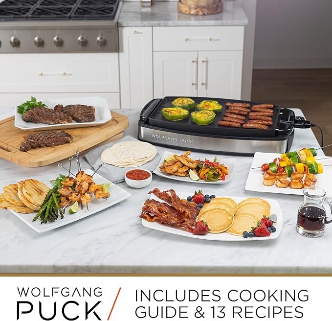 Wolfgang Puck XL Reversible Grill Griddle, Oversized Removable Cooking Plate, Nonstick Coating, Dishwasher Safe, Heats Up to 400ºF, Stay Cool Handles