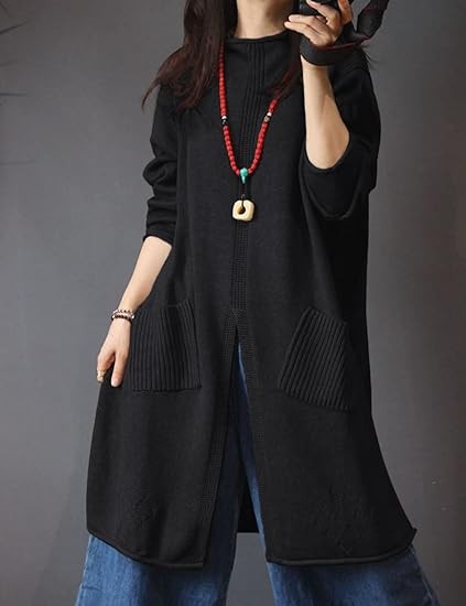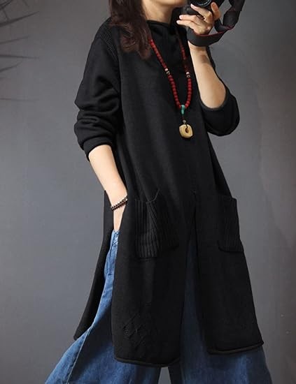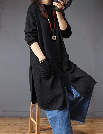 1.Originated and Trendy Design: With 2 sides + front split, let this sweater drape very well but not cling to anywhere; Chic and Functional and give you enough aeshetic;