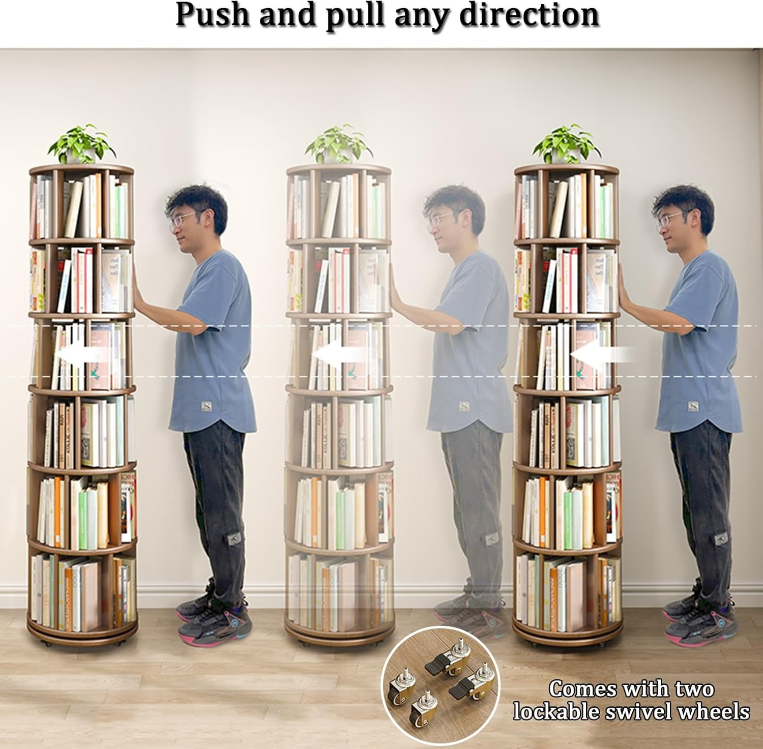 Welcome to YVYKFZD store: * The 360° rotation means it can fit snugly into corners or tight spaces, making it an ideal choice for small apartments or cozy reading nooks. It has a small footprint and makes good use of vertical space.It can be easily accommodated in just a small corner to create a reading corner. * This contemporary simple rolling bookshelf is good addition for your home. The 360° movable wheel design allows you to use it more conveniently and save your time. It can adapt to your various decoration styles so that you can use it in your living room, bedroom, hallway, balcony, etc. wherever you need it.